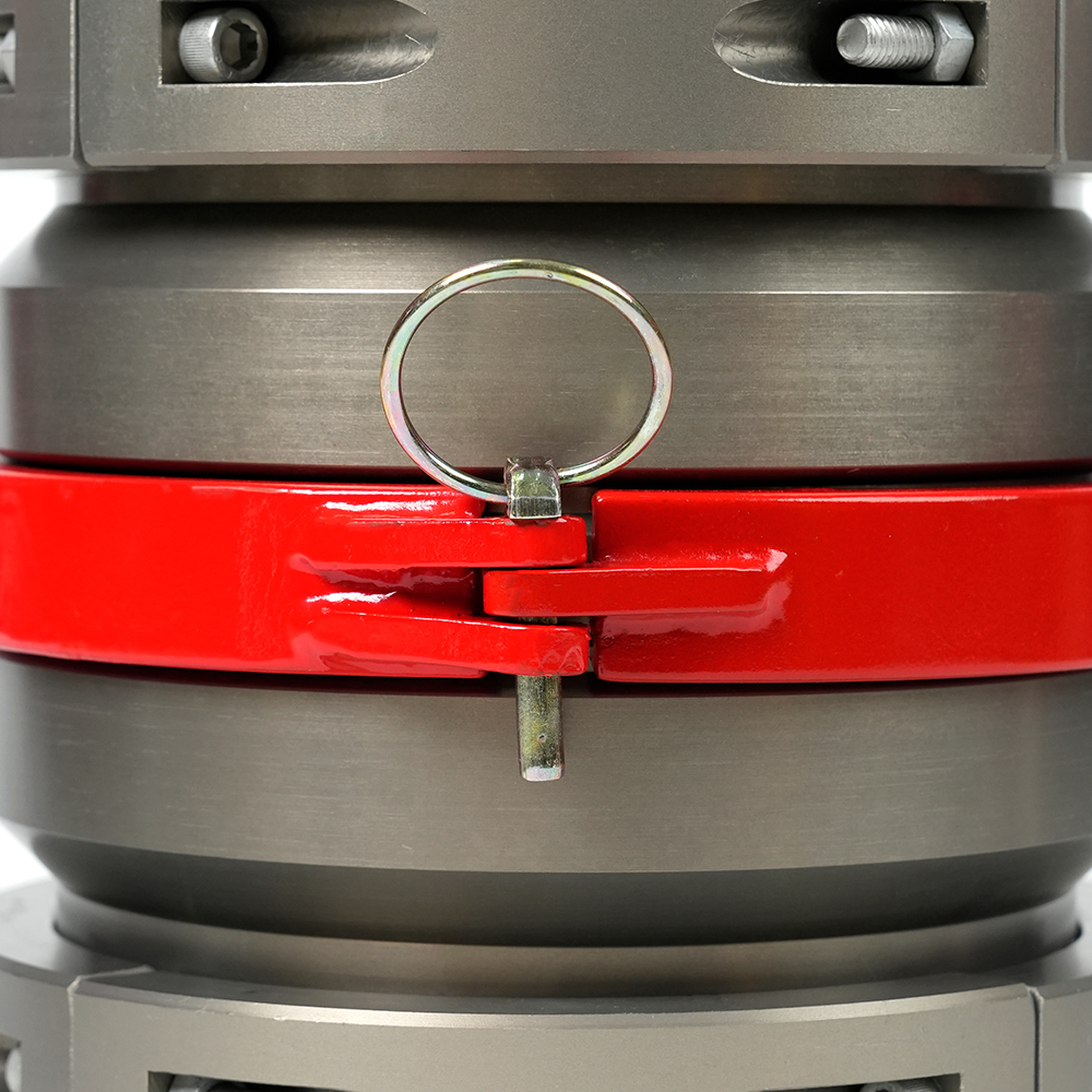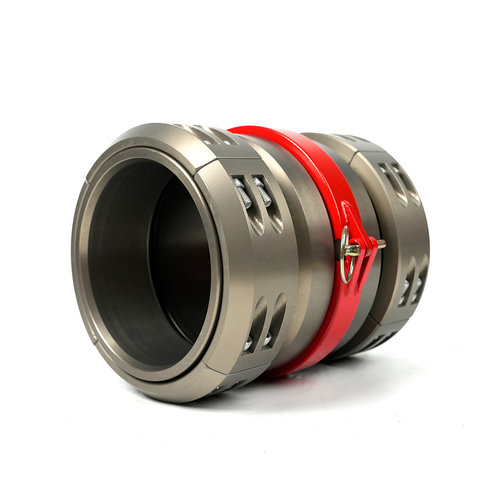 Denne raske koblingen har en firet-lugs interlocking-design, sammenkoblet med en rød aluminium eller stål ytre ring. Den bruker en pin-and-lock ringmekanisme for å oppnå rask tilkobling og frakobling. Koblingen gir høytrykksmotstand, korrosjonsmotstand og ytelse med høy styrke.