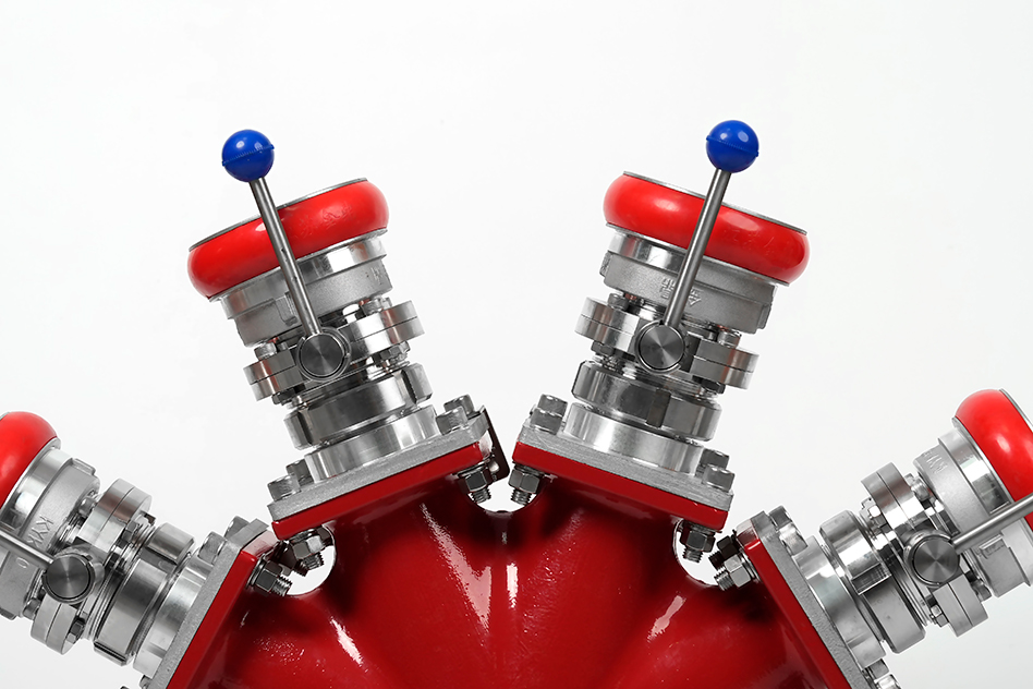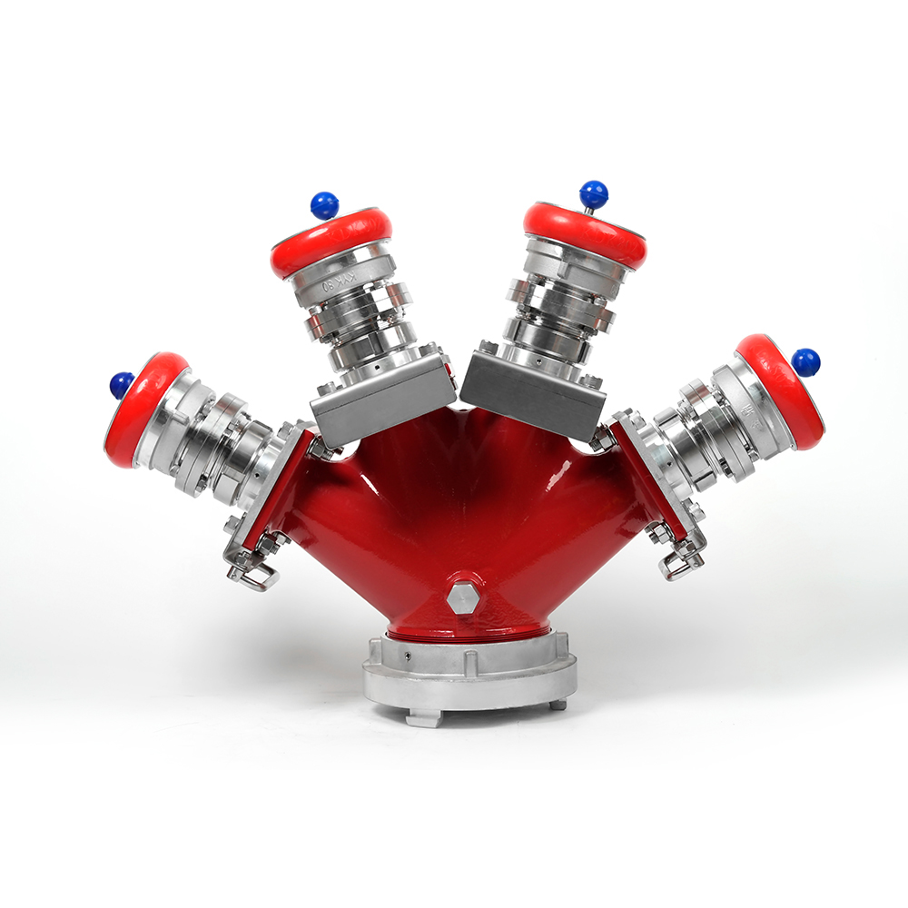 Den låsende brannslangedistributøren er en brannslukking av vanndelere Utstyrt med en låsemekanisme for låsemekanisme for minoperasjon, designet for å dele en enkelt vannstrøm i flere bekker. Hvert utløp er utstyrt med en uavhengig kontrollert ventil.